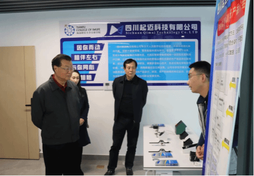 此外,邹广严还参观了绵阳校区校园、学校附属幼儿园(绵阳科技城新区天府实验幼儿园)园内环境,对雅致的校园文化氛围表示赞赏。随后他参观了学校产教融合创新创业基地,在听取了基地的建设情况、运营结构和实践成果等内容后给予了高度评价,提出未来希望两校在学科建设、人才培养等更多领域搭建更多桥梁,将合作推向新的高度。