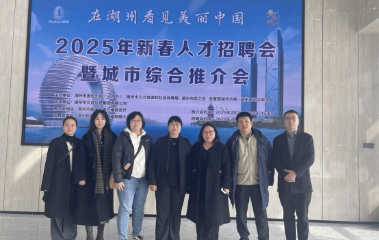 2月26日下午,韩秀英一行出席“在湖州看见美丽中国” 2025年新春人才招聘会暨城市综合推介会。会上,湖州市全面展示了城市发展蓝图、产业集聚优势和人才政策体系,为高校与企业搭建了高效对接平台。湖州市委常委、组织部部长阮叶萍在致辞中表示,青年人才是城市致胜未来的关键变量,湖州正全力打造全国人才双创理想城市,比任何时候都渴求青年人才,也比任何时候都更能托举青春梦想。她热情邀请广大青年人才来湖州感受“诗意栖居与时代脉动的完美交融”,并强调湖州将为青年人才提供全周期支持保障,让各类人才都能找到赛道、站上舞台、尽展才华。