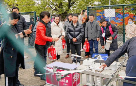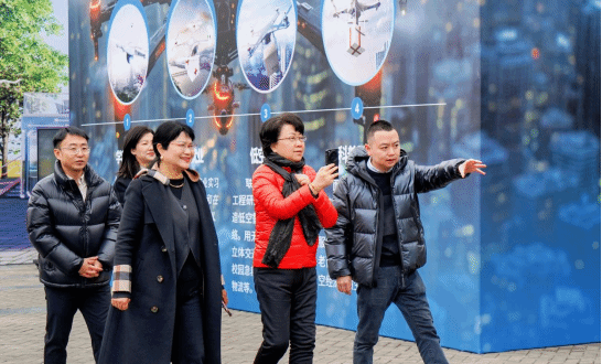 翁铁慧一行先后参观了天府美术馆和天府众合老年护理中心,了解学校低空经济产业学院的相关情况。伴随着螺旋桨的轰鸣,翁铁慧现场体验了无人机外卖配送,对学校在低空经济领域的探索与尝试表示充分肯定。
