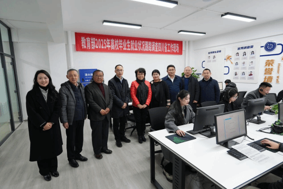 调研过程中,翁铁慧一行走进教育部就业调查四川分中心(西财天府办公区)工作现场,与相关工作人员、带队教师和学生调查员亲切交流,详细询问在调查过程中遇到的难点、堵点问题,听取大家的意见和建议。