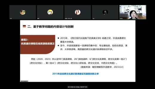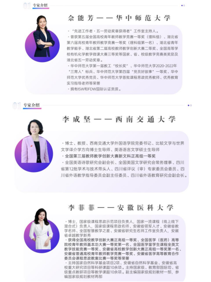 本次活动培训专家主要由全国教师教学大赛获奖名师和省内外赛事评审组成,如华中师范大学佘能芳教授、安徽医科大学李菲菲教授、西南交通大学李成坚教授等,为参训教师讲解教学比赛规则、评委关注重点、比赛资料准备、课程设计、呈现方式、说课技巧、优秀参赛课程分析等内容。专家们对本次参训教师的课程准备资料给予指导及答疑,这将对参训教师在今后比赛中取得好成绩,提升教学水平和能力大有帮助。