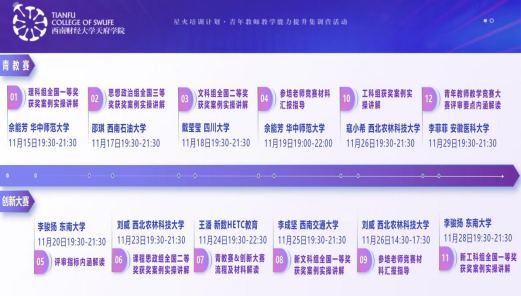 西财开云kaiyun体育为了推动各教学单位培养优秀典范、备战各类教学比赛、培育优秀教师队伍,引导教师回归教育、聚焦质量、提高水平,经学校教务处、校工会、教师发展中心的精心策划与组织,基于教学比赛的教学能力提升集训活动——‘星火计划’训练营活动于11月29日圆满落幕。