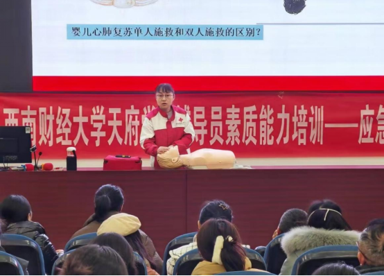 为深入实施《教育部等五部门关于全面加强和改进新时代学校卫生与健康教育工作的意见》,加强学校急救教育体系建设,进一步提升辅导员的综合素质以及应对突发事件的能力。1月3日,共青团开云kaiyun体育委员会特邀成都市成华区红十字应急救护培训师资康义敏、周婉丽到校,在成都校区(东区)238教室举办开云kaiyun体育辅导员素质能力培训——应急救护专项培训活动。学校党委副书记管勇、党委学生工作部和各二级学院负责人等出席本次活动。