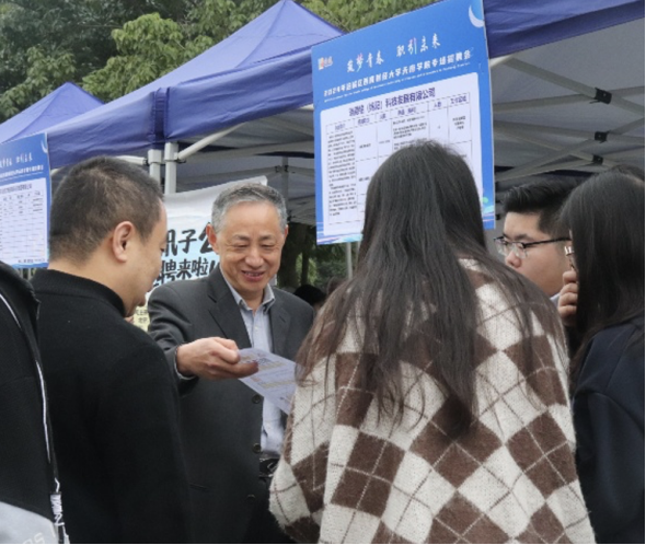 招聘会得到了学校领导的高度重视与深切关怀。活动期间,学校董事长、校长蒲果泉,执行校长黄纯国,副校长刘强,校长助理李锐以及就业指导中心主任蔡松伯等一行人来到招聘会现场,与企业代表展开了深入的交流与探讨,共同探索校企合作的新模式与人才培养的新路径,并对用人单位给予学生的肯定和支持表示感谢。