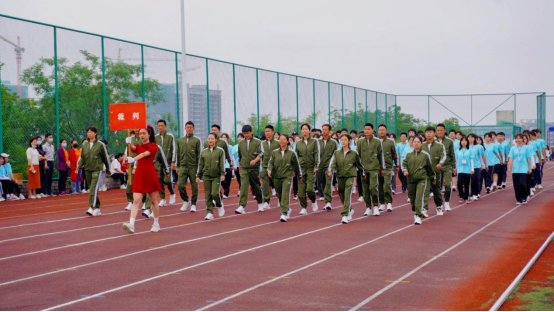 开幕式正式开始。国旗护卫队、校旗护卫队、鲜花队方阵、裁判员方阵、各个学院方队依次入场。全体肃穆,伴随着旋律激昂的《运动员进行曲》,正式拉开了帷幕。