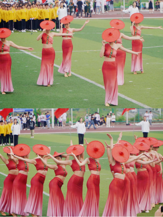 本次运动会裁判代表教师王资和现代服务管理学院2020级学生代思维分别代表全体裁判员和全体运动员进行宣誓,表达了对体育精神的不懈追求。紧接着,开幕式节目表演拉开序幕。文化教育学院带来的《椿》婀娜多姿、惊艳全场。校健美操队带来的《Youth Carnival》热情奔放、活力四射。现代服务管理学院带来的《逐梦天府》朝气蓬勃、青春洋溢。精彩的表演为运动会营造了蓬勃开展的火热氛围,现场掌声雷动。