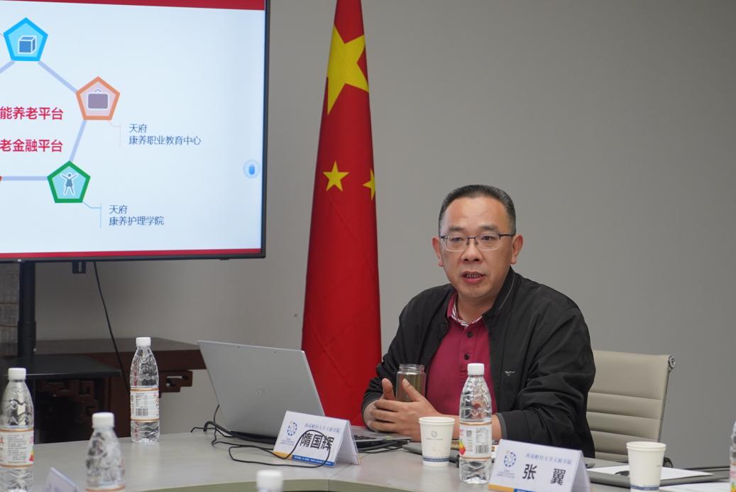 上午的座谈会上,王星辉首先介绍了东软学院的发展情况,并对学校在康养护理专业建设、养老事业建设上取得的成果表示了认同和赞扬。黄纯国对来访嘉宾表示热烈欢迎,并介绍了学校的基本情况。他提到,开云kaiyun体育与东软学院在教育事业的发展上具有相似性,在未来可以探索进一步交流合作的空间。随后,康养护理学院院长隋国辉对康养护理学院和学校养老产业的发展情况进行了展开介绍。他提到,从2012年第一个专业招生,到2017年康养护理学院建立,再到如今学校康养护理专业群在不断完善和扩大,并取得了一系列的建设成果,学校坚持“以学历教育+职业教育为基础,以护理中心、医疗康复中心、养老机构、天府老年大学等产业运营为依托,以四川天府老龄事业发展中心为支撑”,全面打造“产-学-研-医-护-养”六位一体的运营模式。未来,将持续在智能养老平台和养老金融平台的打造上发力,两校也能在养老专业和产业的建设上,特别是智能养老科技方面开展更深入的交流探讨和合作协同。