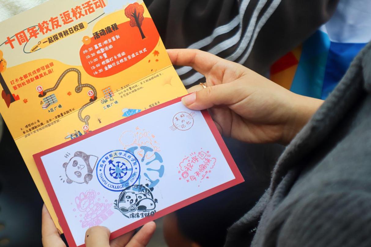 成立仪式结束后,与会校友和嘉宾在光华广场合影留念,并参与设置在校园各处的游园小游戏,留下盖有各式纪念章的明信片。