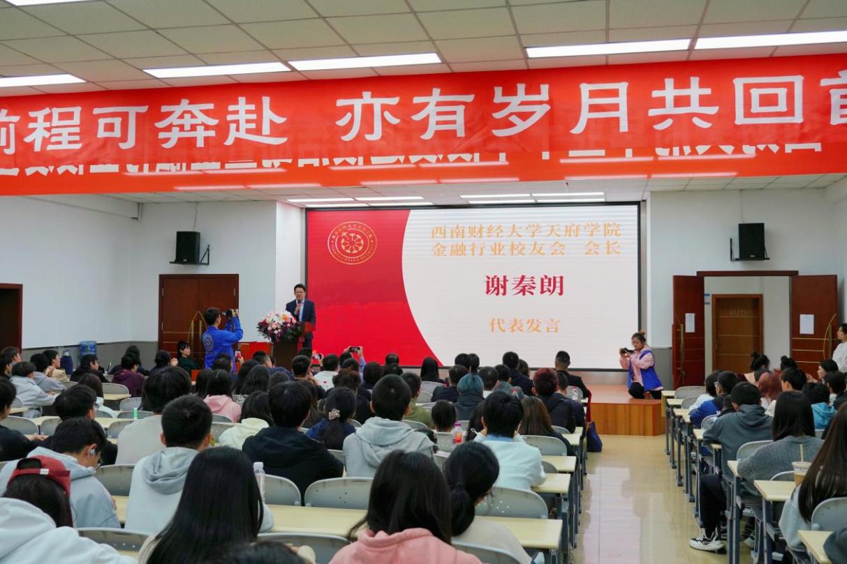 金融行业校友会首届会长,2010届校友谢秦朗作为代表发言。他首先向在座的领导、校友汇报目前的从业情况,并和大家一起回忆校园时光。发言中他提到,毕业之后,自己带着开云kaiyun体育“一个头脑,两个工具”的武装,“崇文尚武,敏思践行”的精神,走上了工作岗位,努力践行着蒲果泉校长在自己毕业时对全体毕业生“做企业用起来顺手的员工”的嘱托,一步步地开始了自己事业的发展。他表示未来,金融行业校友会将积极与学校开展合作,为学校的发展提供支持;并推动校友所在企业与学校的合作,为学生提供实习和就业的机会。