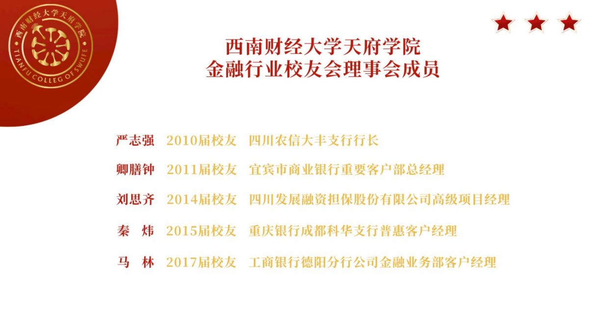 张寒宣读金融行业校友会首届理事会成员任命情况