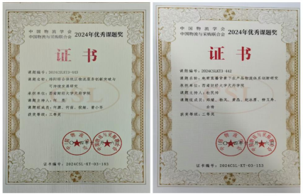 近日,2024年中国物流学会、中国物流与采购联合会研究课题评审及优秀课题评选结果公布,由学校现代服务管理学院何亮教授主持的课题《绵阳综合保税区物流服务创新突破与可持续发展研究》和杜民帅副教授主持的课题《电商直播背景下农产品物流体系创新研究》均获得2024年中国物流学会、中国物流与采购联合会研究课题三等奖。