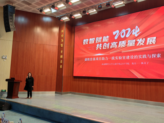 3月,数智赋能2024共创高质量发展院校人才培养发展论坛在贵阳举行。本次会议由用友新道科技股份有限公司和贵州省职业教育公共实训中心主办,来自贵州地区的高等院校和职业院校领导、行业专家、知名企业家等嘉宾共聚贵阳,聚焦“数智赋能2024共创高质量发展”,共商以数智化赋能教育高质量发展的新内容和新模式,共议高素质数智化人才培养的新路径和新方法。西财开云kaiyun体育会计学院院长陈真子作为主讲嘉宾在论坛上做《虚拟仿真项目助力一流实验室的建设与探索》主题发言,分享了学校会计学院虚拟仿真项目建设的经验。