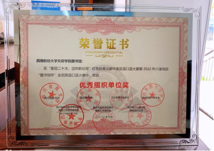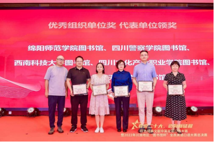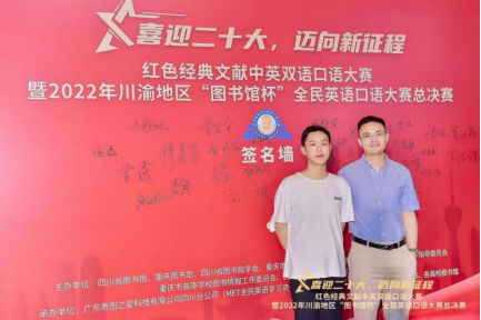 7月2日下午,由四川省图书馆、重庆图书馆、四川省图书馆学会、重庆市图书馆学会、四川省普通高等学校图书情报工作指导委员会、重庆市高等学校图书情报工作委员会、四川省中心图书馆委员会办公室主办,广东粤图之星科技有限公司四川分公司承办的“喜迎二十大,迈向新征程”红色经典文献中英双语口语大赛暨2022年川渝地区“图书馆杯”全民英语口语大赛现场总决赛在四川省图书馆举行。