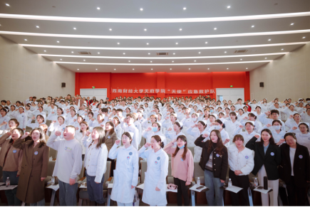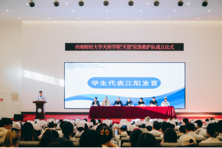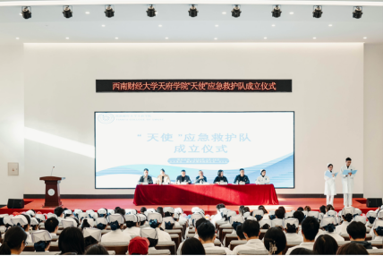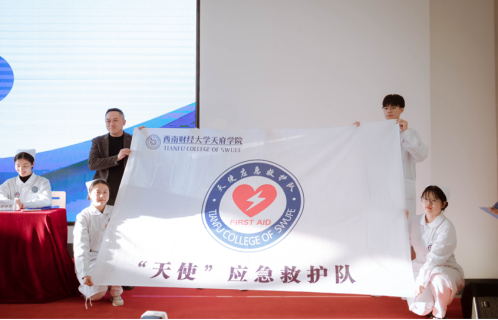 最后,救护队全体成员在江阳的带领下进行入队宣誓。响亮而诚挚的誓言代表着“天使”应急救护队每一位队员的决心,展现出天府学子的担当与风采。