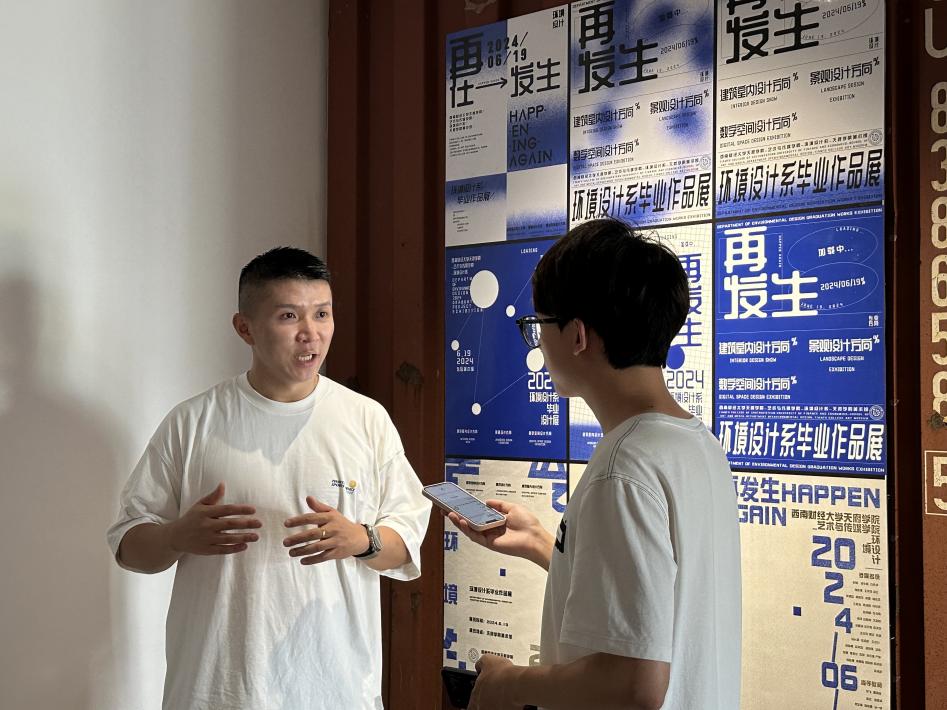 此外,不少参展的同学也为本次毕业展点赞。来自数字媒体艺术设计专业的大一学生程佳怡说道:“我的整体感受是震撼而深刻的,毕业作品有文创产品设计、空间设计、室内建筑设计等类型,涵盖的设计内容十分广阔。其次,我被学长学姐们的才华所折服。他们的作品不仅技艺精湛,更充满了对生活的感悟和对世界的思考。我能够感受到他们在创作过程中的用心与努力,以及他们对于艺术的热爱与追求。这种精神让我深受鼓舞,也让我更加坚定了自己追求艺术的决心。”