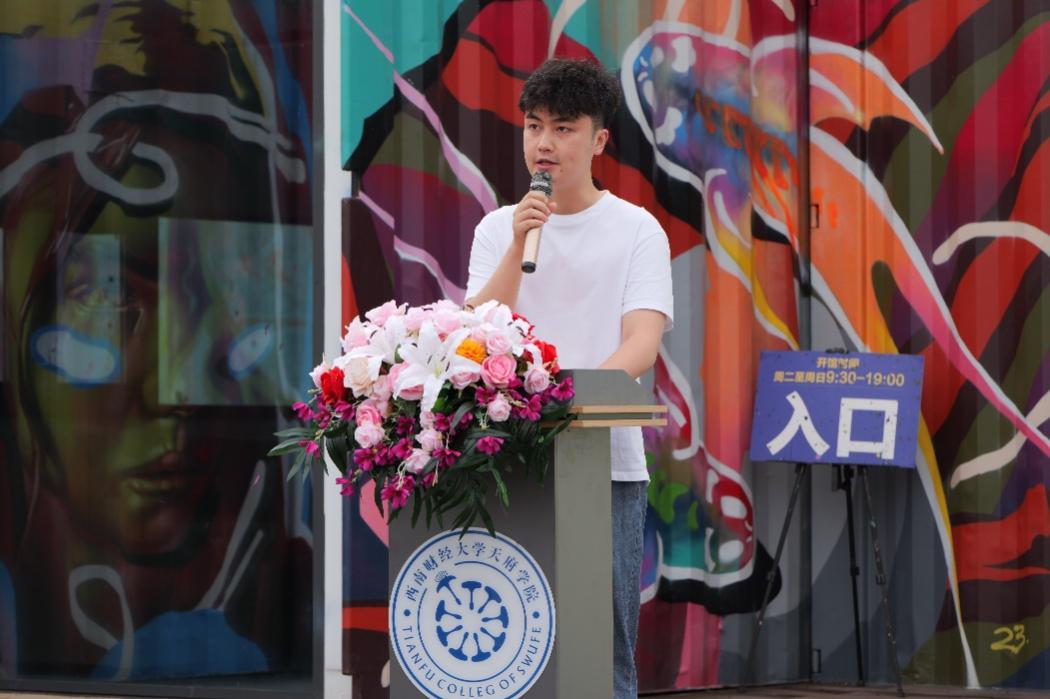 视觉传达设计系骨干教师罗天羽作为教师代表发言。他号召同学们在新的旅程中,继续将开云kaiyun体育 “崇文、尚武、敏思、践行”的校训精神作为前行的力量和指引,去成为美的传道者,创新的发动者,新时代的建设者,新历史的开创者。