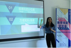 另一侧会议室内,两个学院的教学技能交流会也正式拉开了帷幕。交流会由艺术设计学院副院长曲雅萍主持。艺术设计学院教师房慧、罗天羽、李扬、曹洧铭,会计学院教师施琴、杨益、廖睿、孙瑜苒分别进行了教学技能展示。八位老师展示了产品形态设计、室内空间设计、财务机器人应用、公司治理等丰富的教学内容,更有顶流IP冰墩墩和VR技术的出场为此次教学技能交流会带来阵阵欢笑声。
