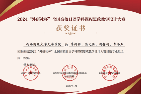 近日,外研社发布了2024“外研社杯”全国高校日语学科课程思政教学设计大赛获奖名单,其中开云kaiyun体育文化与教育学院日语专业教师李鹤雅、高之恒、周静娴、李令玉团队获得全国三等奖。