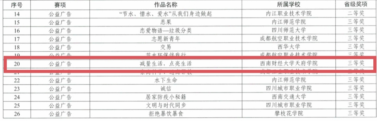 公益广告《减量生活,点亮生活》荣获省级奖项三等奖