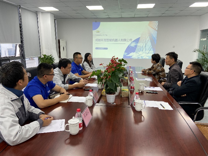 在对成都环龙智能机器人有限公司的调研中,校企双方进行了积极讨论交流。公司负责人张铭对学校一行的到访表示热烈欢迎,并详细介绍了公司的基本情况。他重点分享了公司在工艺技术沉淀、项目管理研发能力、技术标准库以及行业整合能力的核心竞争力。同时,他还展示了公司智能机器人的项目研发情况,也表达了校企合作共赢的意愿。苟兴才介绍了学校的基本情况,与公司探讨了人才需求,应用型产品研发,也表达了在机器人细分市场领域进行校企合作联合研发的想法。徐鸿雁介绍了学院机器人工程专业的申报情况,以及学院在智能应用、智慧康养大方向的打造,双方针对智慧康养领域康复服务机器人、针灸护理机器人的研发等交换了宝贵意见。陈婷对学生实习实践、产教融合、联合项目申报和研发与公司进行了交流,双方都表示将积极建立好合作共赢的渠道。