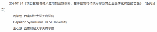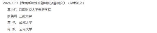 其中,学术论文《我国系统性金融风险预警研究》荣获二等奖;科普读物《羌族草编》、系列论文《项目管理与技术应用的创新探索:基于建筑可持续发展及其企业数字化转型的实践》荣获三等奖。