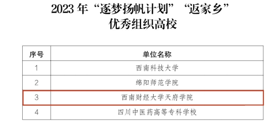 此次获奖既是对天府学子的鼓励,更是对学校深入推进“逐梦扬帆计划”“返家乡”社会实践活动工作的肯定。在未来的日子里,学校将不断推进社会实践活动的深入开展,为培养具有社会责任感和创新精神的新时代人才而努力奋斗。