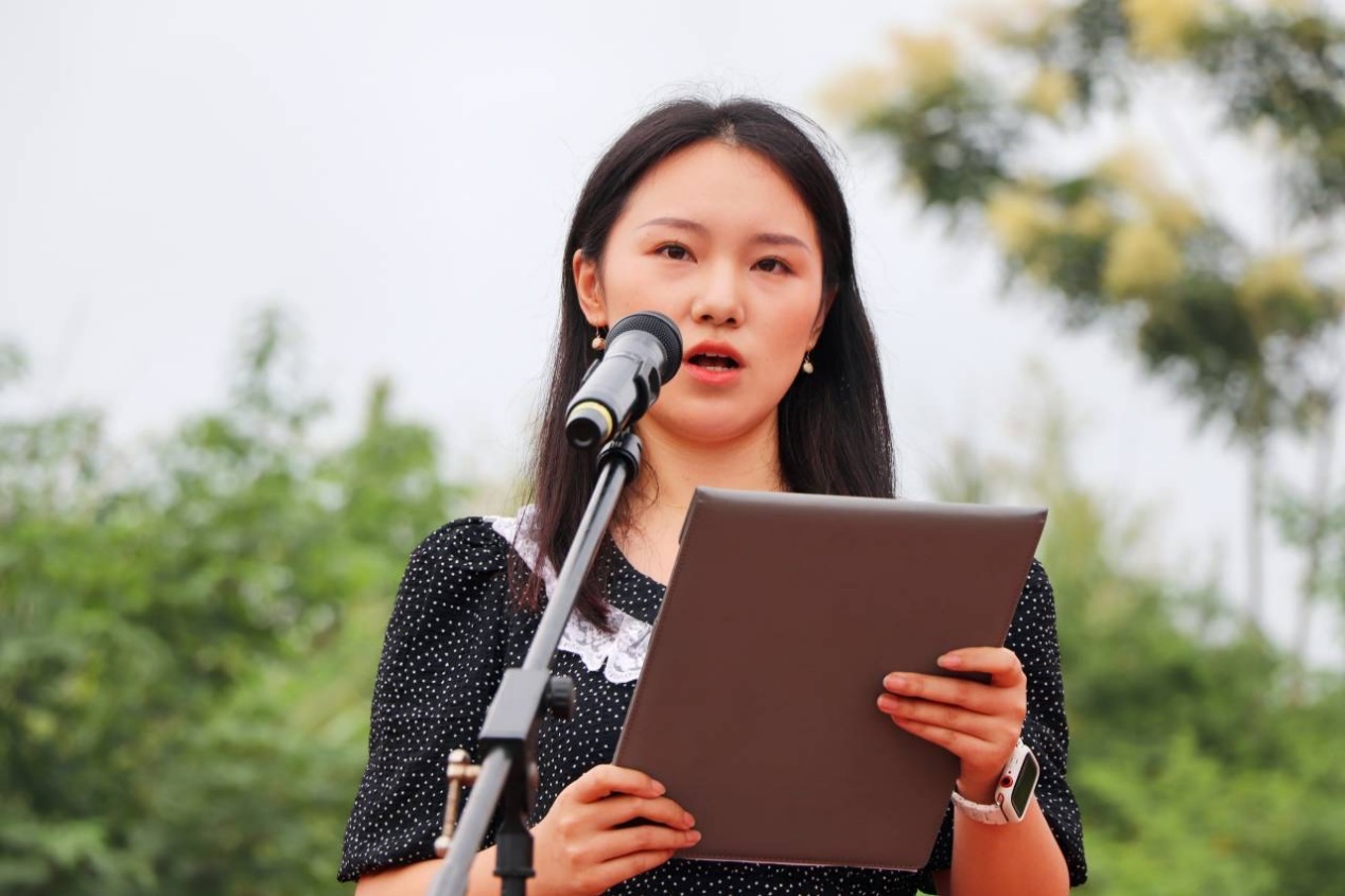 2023级专大数据会计03班胡馨茹作为新生代表进行发言,她提到作为大学生应加强修养,迎接挑战,完善自我,规范自我言行,提高自身思想素质,同时遵守学校日常规范,遵守社会秩序,展示天府学子的良好风采。