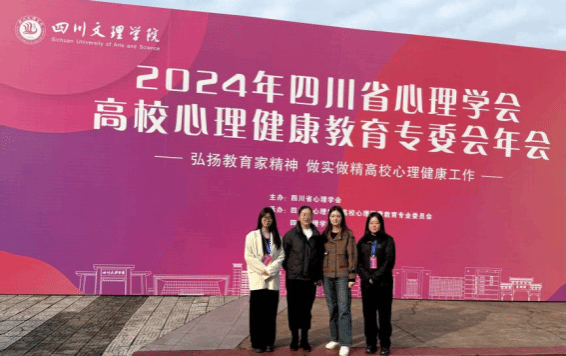 11月13日至15日,2024年四川省心理学会高校心理健康教育专委会年会在四川文理学院莲湖校区召开,全省高校心理健康教育工作者参加会议。党委学生工作部心理健康教师黄丹、范兴娴、袁梦作为学校代表参会,国际教育学院辅导员张世玉应邀在大会上作优秀论文报告。