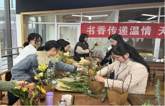 德阳校区图书馆紧扣活动主题,精选了养生、茶艺、插花、服饰、美容、理财等系列主题图书,展出的《茶经》《茶文化知识》《插花图鉴》《插花与花艺设计》《女性养生》等图书使体验活动充满书香、茶香与花香,虽然饮的是茶,插的是花,但看到的是美,体会到的是“礼”,净化的是心灵。