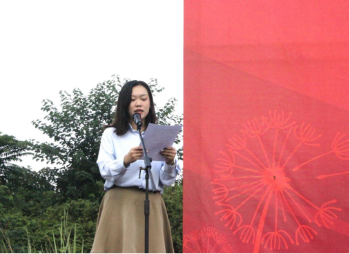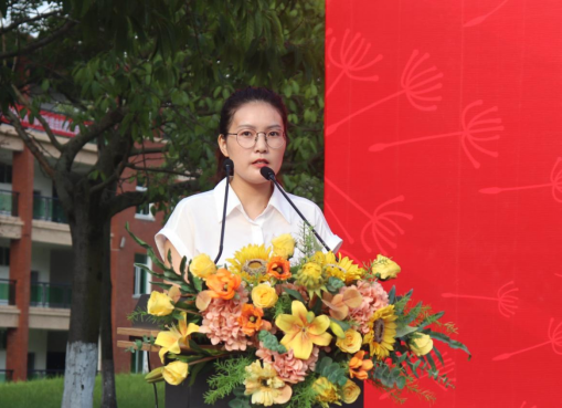 校友代表、文化与教育学院2011届毕业生何萍在发言中诉说了自己在大学生活中的成长与蜕变,表达了对母校的感恩之情,结合自身求学和工作经历,鼓励新生们学好专业知识,做好人生规划,锻炼各项能力,珍惜身边友谊,以奋进实干的态度、饱满的热情和稳健的步伐迈向未来。