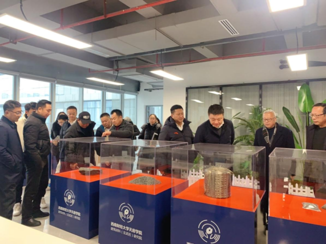 交流会上,韩记首先对代表团莅临玄武岩研究院考察交流表示热烈欢迎,并通过观看讲解学校、学院以及玄武岩研究院的对外宣传视频帮助代表团更好的了解学校、学院以及玄武岩研究院的情况。之后,梁茂林从玄武岩连续纤维的发展历程、目前的发展现状、玄武岩材料的结构、组成、性能与应用、四川发展玄武岩材料的基础以及高质量发展的措施五个方面详细介绍了玄武岩材料。最后,双方就玄武岩材料助力政府、企业、学校、社会经济发展等方面进行了交流与研讨。