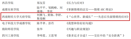 近日,四川省心理学会高校心理健康教育专委会公布了2024 年四川省高校“5·25”心理健康系列