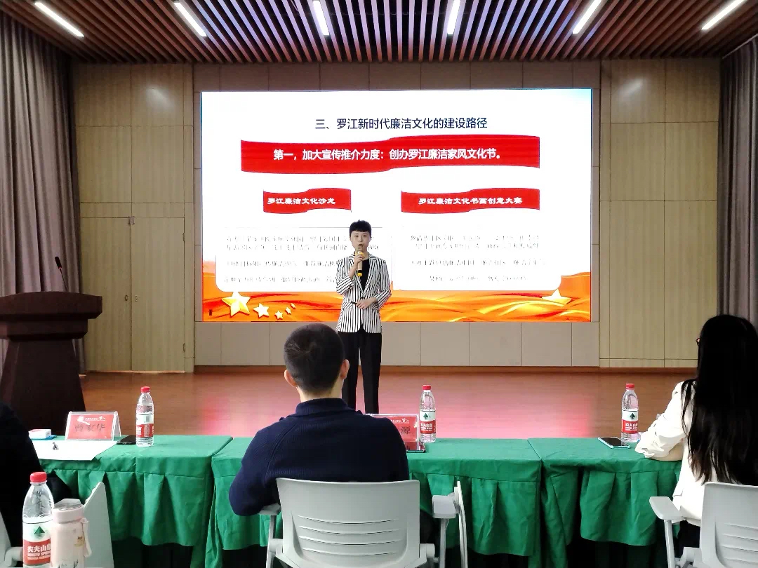 自今年10月开赛以来,学院积极宣传、动员组织、精心准备,共派出5名教师代表参赛。其中,颜莎莎以“弘扬罗江范氏家风 建设罗江廉洁文化”为题,从区域文化特色为切入点,讲述如何加强廉洁文化建设。唐蕾以“绿色罗江 大美德阳”为题,讲述了罗江统筹绿色发展,推进生态环境建设。