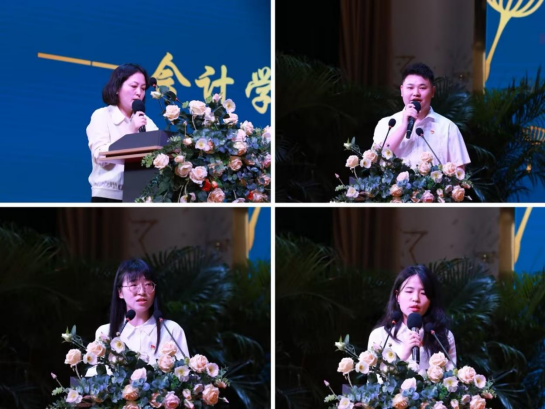 会计学院院长陈真子、工程与材料学院王健、康养护理学院贾林和艺术与传媒学院学生第二支部书记苟明娇作为受表彰代表上台发言,分享了各自的经验做法和工作感悟,表示将珍惜荣誉、不懈奋斗,在实干担当中提振精气神、奋进新征程,带头团结奋斗,切实发挥先锋模范作用,以更加饱满的热情、更加坚定的步伐,推动学校各项事业欣欣向荣。