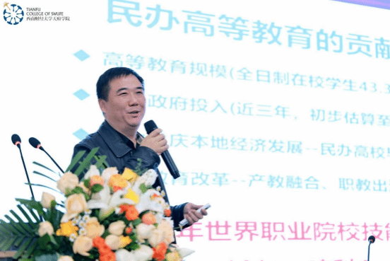 张应辉在致辞中表示,四川省作为民办教育大省,在培养应用人才、促进高等教育普及化方面发挥了重要作用,也取得了很多优异的成绩,但同时要清醒地认识到民办教育目前面临的压力和挑战,并且积极寻找创新之路。他希望各民办高校从引入优质资源、把握地方需求、实现转型发展等角度主动思考、有所作为,共同创造民办高校可持续发展的新未来。