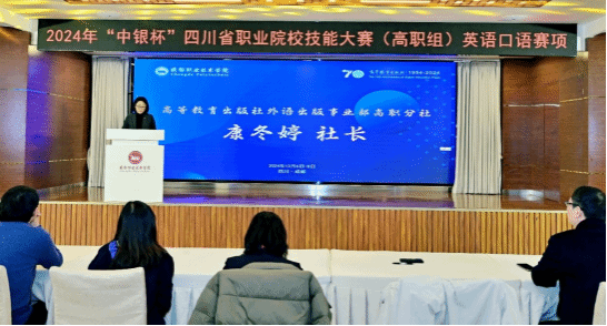 8日上午,所有比赛环节结束,协办方高教出版社外语出版事业部高职分社康冬婷、大赛裁判长王朝晖教授、大赛仲裁长黄丽君教授、承办方成都职业技术学院国际教育学院钟富强院长发表闭幕讲话,对参赛院校和学生做出的努力和所取得的成就表示高度认可。