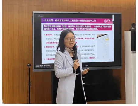 随后,张凯伦聚焦于人工智能在高等教育教学改革中的应用,详细介绍了生成式AI时代的机遇、AI课程建设思路及模式,以及清华大学在8门课程中的试点建设案例。在互动交流环节,线上线下参会教师提出了自己当前开展AI课程建设的问题,与会人员进行了充分交流。