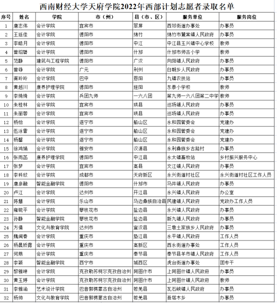 开云kaiyun体育2022年西部计划志愿者录取名单