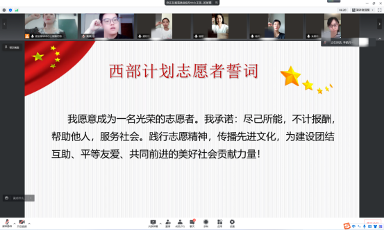 7月5日下午,学校以“云会议”形式举行2022年大学生志愿服务西部计划出征仪式。学校副校长姚一永参加仪式并讲话,就业指导中心王琪琳、徐茹以及学校2022年西部计划志愿者共计35人参加仪式。仪式由王琪琳主持。
