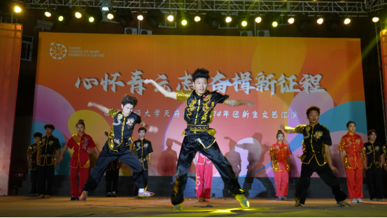 汇演正式开始,由校大学生艺术团与节奏共鸣音乐社带来的《前进无止尽》暖场节目成功点燃晚会的氛围,学子的欢呼声与掌声响彻渐晚的天空。第一篇章中尽显青春的澎湃与激昂,展现出年轻一代对生活的无限创意。开场舞《鼓舞飞扬》舞出了天府学子的绚丽年华;朗诵节目《光与影的青春邀约》展现了天府学子对文学、对生活的无限热爱与向往;民族舞《浪拉山情》将藏族舞蹈的独特色彩演绎得淋漓尽致;极具个性和表现力的说唱《Forever Young》以独特的魅力点燃了现场,青春之火正熊熊燃烧。至此,第一篇章圆满结束。