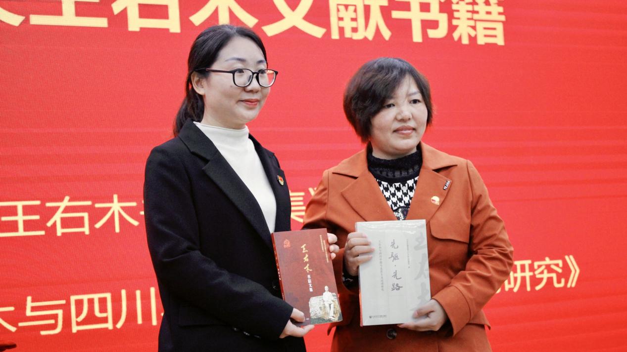 仪式上,王右木纪念园向学校捐赠100本《王右木书信文集》和30本《先驱·先路——王右木与四川早期马克思主义运动研究》。
