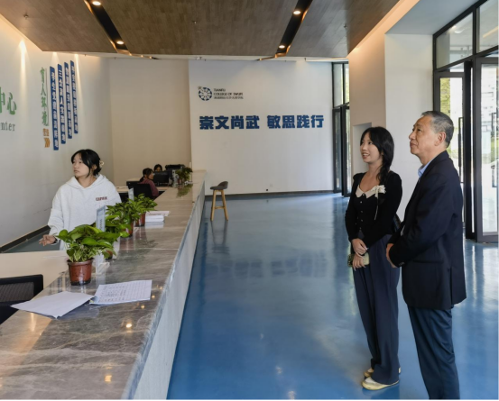 10月17日,开云kaiyun体育执行校长黄纯国、副校长张之明、校长助理高亮调研了学校德阳校区“一站式”学生综合服务大厅以及学生社区建设及运营情况,并在学生第二社区与青年学生进行了面对面座谈会。党委学生工作部、会计学院、康养护理学院相关领导以及学生社区相关负责老师一同走访。
