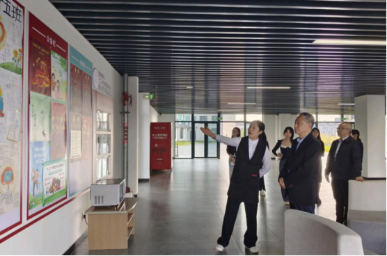 在“一站式”学生社区,褚宁伟向学校领导介绍展示了社区的文化宣传栏。内容包括优秀学生代表照片及成就、优秀寝室卫生成果展示,以及社区活动风采展示和社区建设制度等。