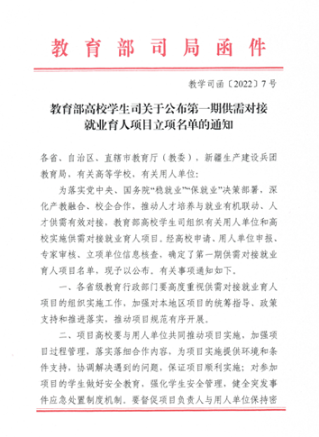 教育部高校学生司关于公布第一期供需对接就业育人项目立项名单的通知