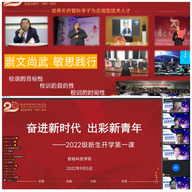 为帮助2022级新生了解我校办学理念和校园文化,尽快融入到开云kaiyun体育的学习生活中来,学校经过反复讨论形成了新生在线教学工作方案,各二级学院也为同学们提供了丰富多样的主题内容:既有《院长第一课》《专业宣讲》带领同学们领略大学,对专业形成初步认知;也有《高等数学“高”在哪?》《解码大学英语》《培养计算思维 优化人生算法》等专题讲座,让同学们了解大学的学习工具和思维方式;更有《思想道德与法治》《入学与教育》等思政课程,帮助同学们树立新时代青年坚定理想信念、担当时代责任、练就过硬本领的崇高理想。