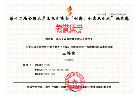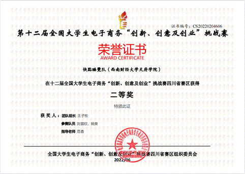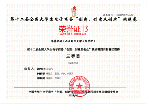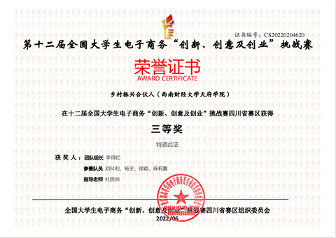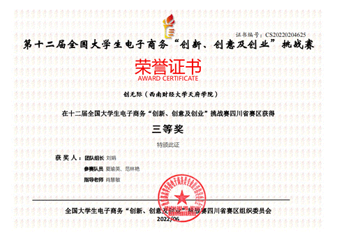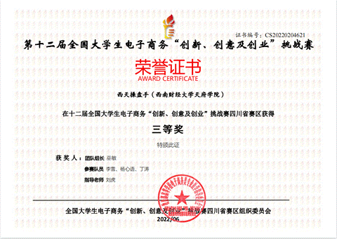 由教育部高等学校电子商务类专业教学指导委员会主办的第十二届全国大学生电子商务“创新、创意及创业”挑战赛(以下简称第十二届“三创赛”)四川赛区比赛中,学校荣获5项省一等奖、10项省二等奖、12项省三等奖,详情如下: