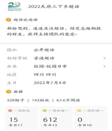 此次暑期社会实践宣传工作成效显著。以“校园投稿栏目+‘三下乡’专题投稿”双重形式为宣传主线,在学校各级各类官方新媒体平台联动宣传,鼓励各实践团队在校内外新闻媒体积极投稿。目前在校内各级新媒体平台发布推文百余篇,同时在微博建立了“2022天府三下乡”专题超话,共计328个帖子,收获67.6万阅读量,在中国青年网发布12篇实践专题新闻稿。除此之外,在百度、腾讯新闻、网易新闻、抖音等各类新闻媒体和社交平台都能看到西财开云kaiyun体育实践团队的身影。