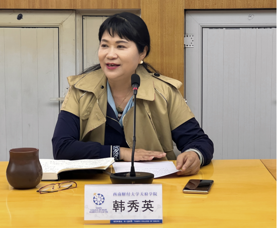 韩秀英在总结发言时说道,今天的讲座不仅是一场学术盛宴,更是一场精彩生动的示范性党课,王伟教授以生动幽默的语言、严谨清晰的理论逻辑和新颖的视角,深入浅出地讲透了马克思主义与中华优秀传统文化的内在逻辑与融会贯通,深刻阐述了中国共产党为什么能,中国特色社会主义为什么好,归根到底是因为马克思主义行,提出了在新的征程我们必须毫不动摇坚持党的全面领导,确保我们党薪火相传,红旗永远飘扬。这不仅对于我们深刻理解马克思主义中国化的“两个结合”具有重要启示意义,也为我们深入学习领会习近平新时代中国特色社会主义思想、贯彻落实党的二十大精神提供了坚实的理论基础,更为学校进一步推进马克思主义学院建设和学院师资队伍建设指明了方向。同时她强调,下一步学校各级党组织要持续做好讲座内容的领会和宣传,通过丰富多彩的形式让广大师生进一步感悟中华优秀传统文化精神内涵,引导师生延续文化基因、红色基因,增强文化自信;要坚持学用结合、做到学以致用,把党的创新理论转化为推动学校高质量发展的强大力量。