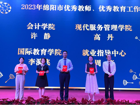黄庆为获2023年绵阳市优秀教师、优秀教育工作者称号的教师颁发荣誉证书