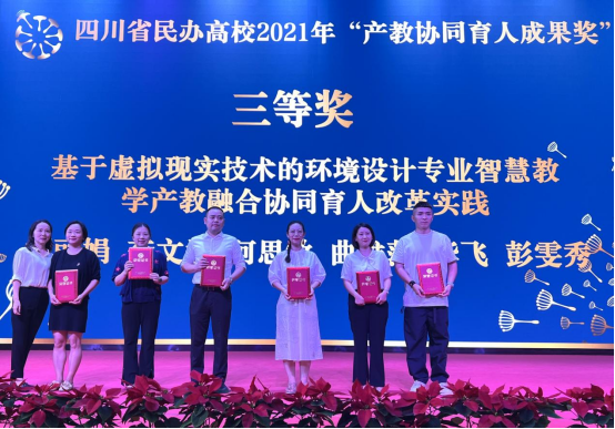 徐天春为四川省民办教育协会2021年“产教协同育人成果奖”获奖教师颁发荣誉证书